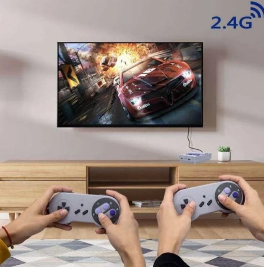 Incluye dos joysticks inalámbricos, para que puedas jugar cómodamente desde el sillón, sin cables que te molesten. Ideal para compartir tardes de nostalgia con amigos, en familia o simplemente para perderte en esos mundos que tanto nos marcaron.