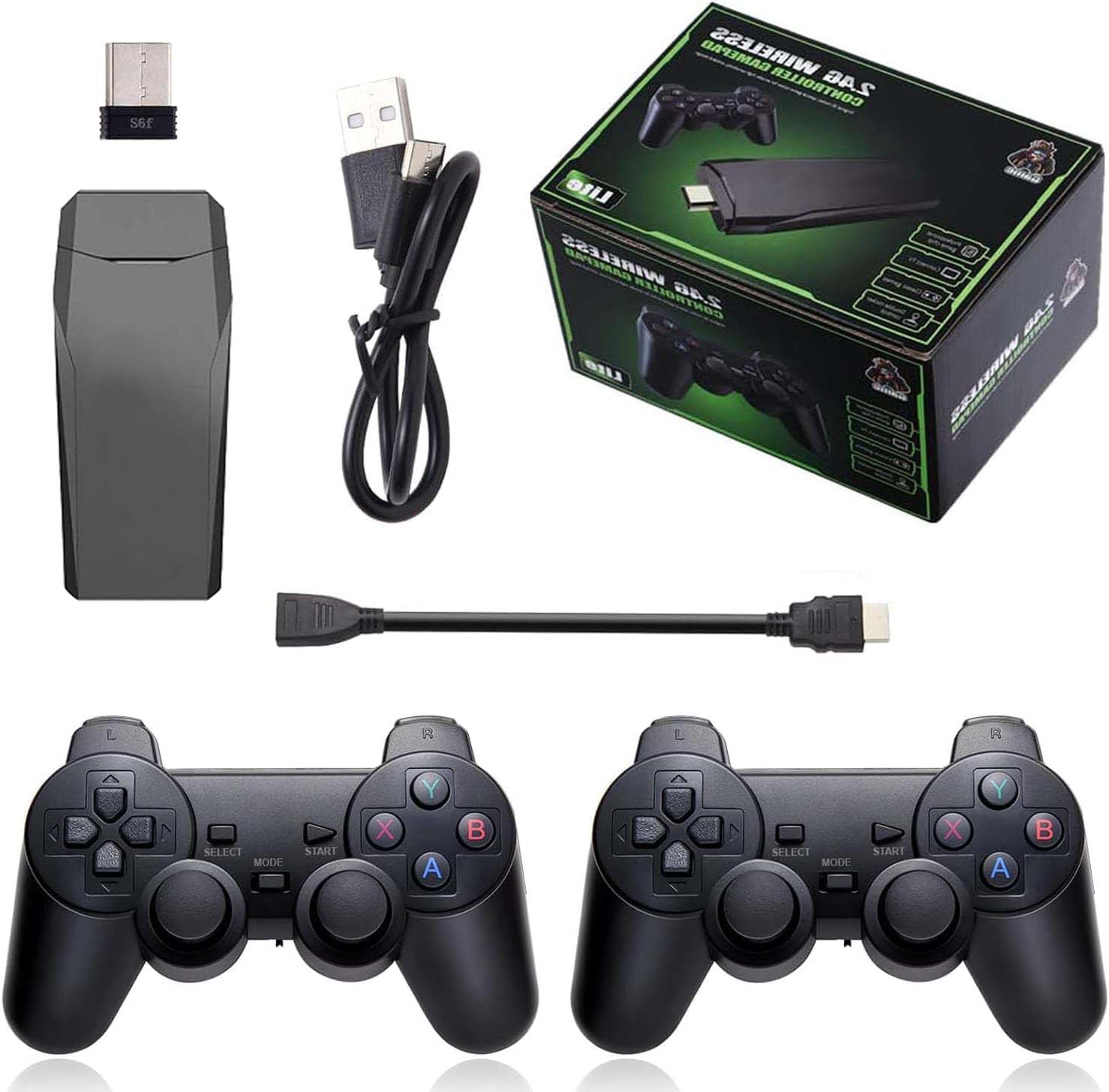 La Consola Retro Inalámbrica HDMI incorpora más de 10.000 juegos, preinstala 9 emuladores y viene con una tarjeta TF de 64 GB. No hay necesidad de descargar e instalar por sí mismo, sin necesidad de Internet, se puede jugar + de 10.000 juegos clásicos con sólo conectarse a la TV. ¡Le permite jugar a juegos sin repetición todos los días y traer de vuelta su memoria a la diversión de la infancia, y disfrutar de tiempo de entretenimiento familiar.