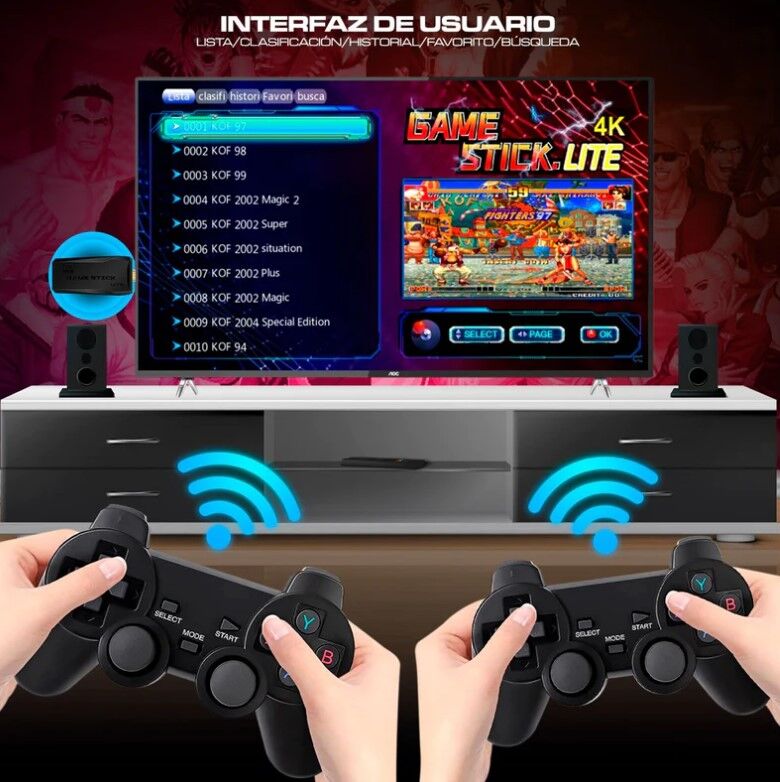 Simplemente conecte la consola de juegos retro a la entrada HDMI de tu TV, y luego el cable USB para alimentarse. El Game Stick (la consola) se encenderá.